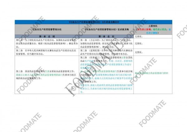 化妆品生产经营监督管理办法(46号令)和意见稿比对