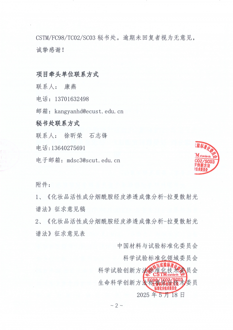 核心提示:中关村材料试验技术联盟关于CSTM团体标准《 化妆品活性成分烟酰胺经皮渗透成像分析 拉曼散射光谱法》征求意见的通知,截止2025年6月17日。